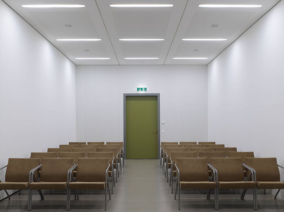 Als Ort der konzentrierten Auseinandersetzung mit den Beständen des Archivs der Zeitgenossen fungiert eine kubisch angelegte Halle aus Sichtbeton, die eine Ebene unterhalb des betriebsamen Tagesgeschehens der Universität für Weiterbildung Krems liegt.