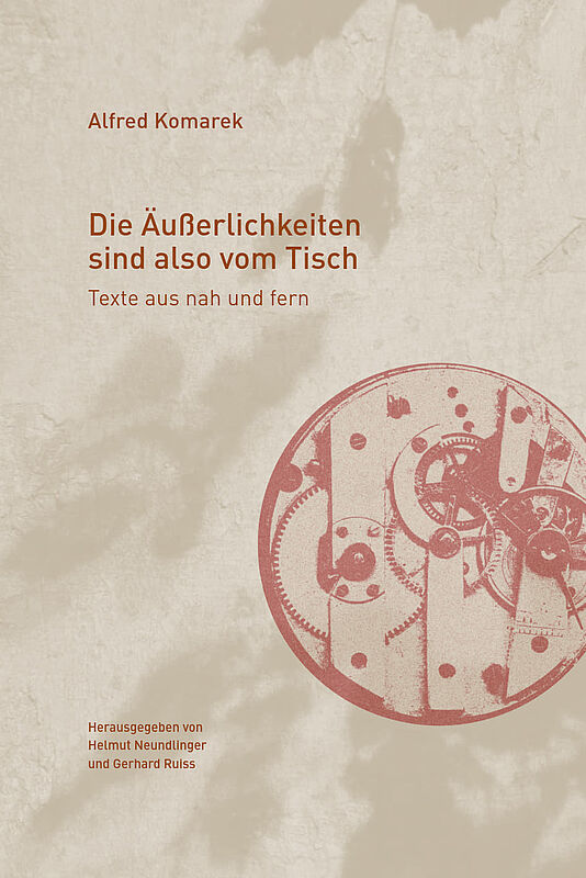Der Band „Die Äußerlichkeiten sind also vom Tisch“ versammelt Texte, die er in den 1980ern und 1990ern für Magazine, Zeitschriften und Kunstperiodika verfasste. Die Auswahl zeigt Komarek in seiner Bandbreite als Erzähler vielfältigster Wirklichkeiten: Über Stadt, Land, Straße, Fluss und Meer nimmt er Orte und Menschen in den Blick und berichtet ebenso unaufgeregt wie gewitzt über die schönen Eigenarten des Alltäglichen.