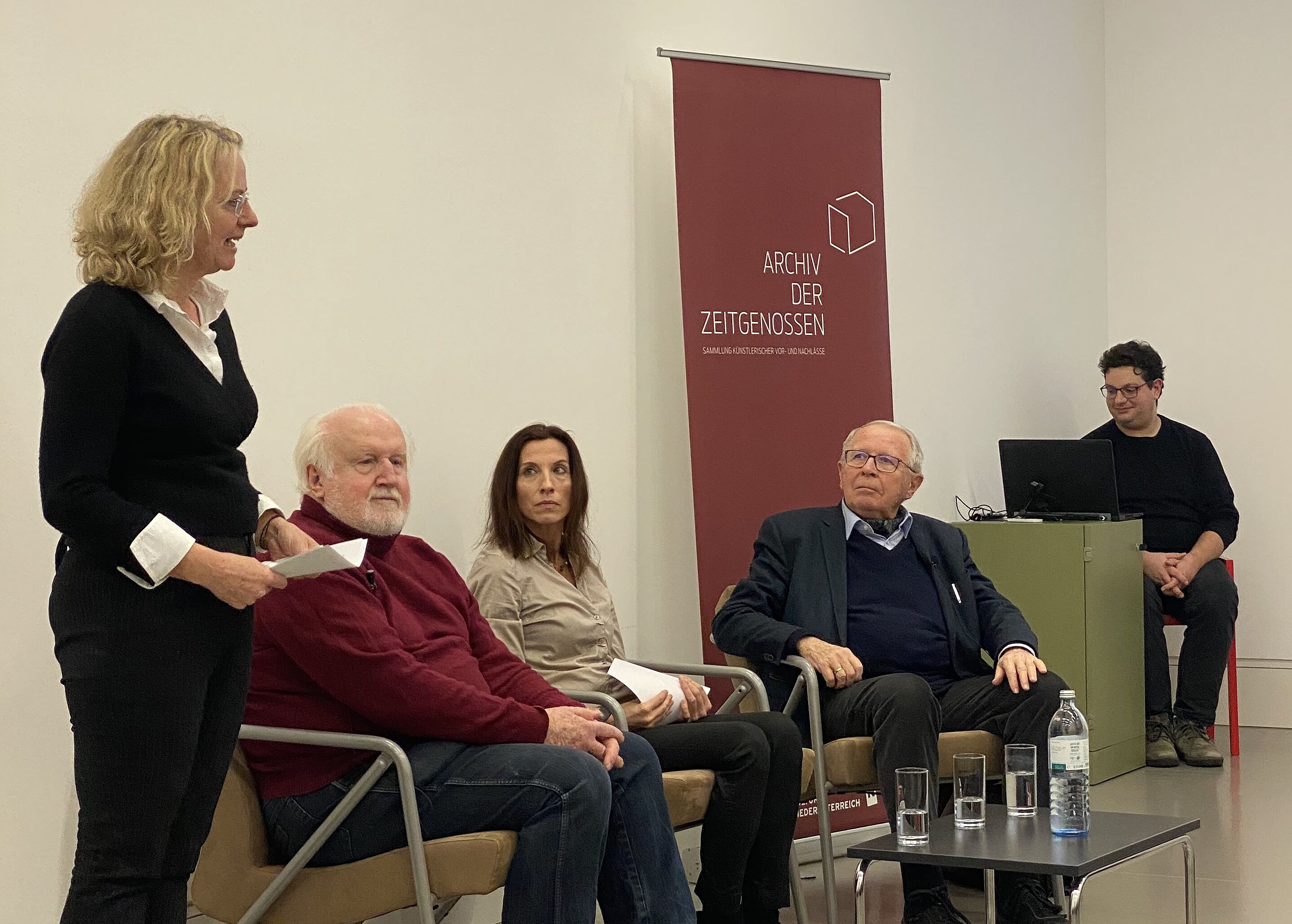 Im von der Zeit- und Medienhistorikerin Karin Moser moderierten Rückblende-Gespräch am Archiv der Zeitgenossen erinnerten sich der Autor Wilhelm Pevny und der Sozialhistoriker Ernst Bruckmüller am 13.2. an die Entstehung der „Alpensaga“-Drehbücher.